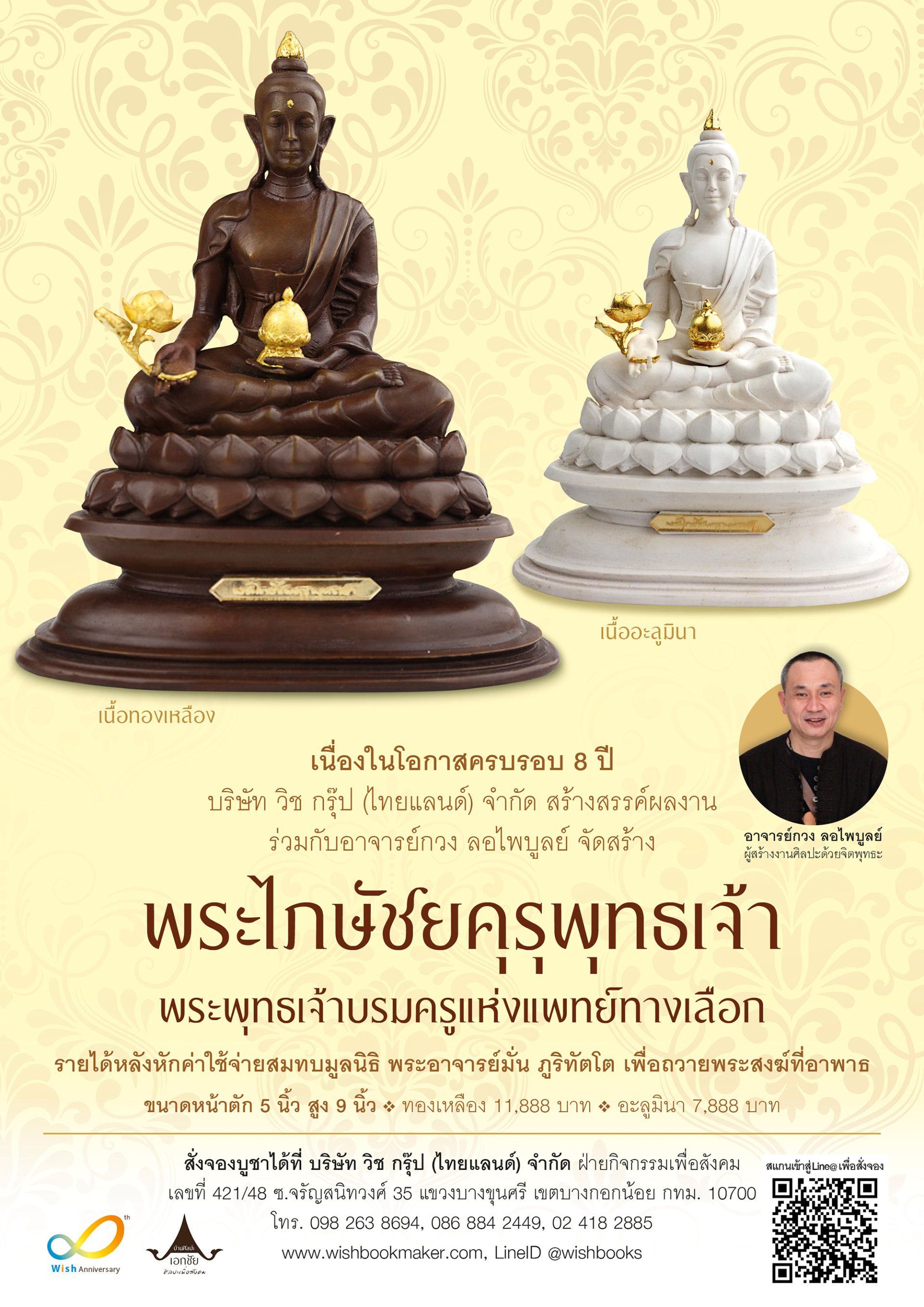 วิช กรุ๊ป (ไทยแลนด์) สร้างสรรค์ผลงานพุทธศิลป์ร่วมกับอาจารย์กวง ลอไพบูลย์ ผู้สร้างงานศิลปะด้วยจิตพุทธะ จัดสร้างพระไภษัชยคุรุพุทธเจ้า พระพุทธเจ้าบรมครูแห่งการแพทย์ทางเลือก พระผู้มีความเมตตาประทานธรรมโอสถแก่สรรสัตว์ทั้งปวง ในโอกาสที่ บริษัท วิช กรุ๊ป (ไทยแลนด์) จำกัด หรือสำนักพิมพ์วิช ก้าวเข้าสู่ปีที่ 8 เพื่อนำรายได้ส่วนหนึ่งสมทบมูลนิธิพระอาจารย์มั่น ภูริทัตโต อุปัฐากพระสงฆ์ที่อาพาธ