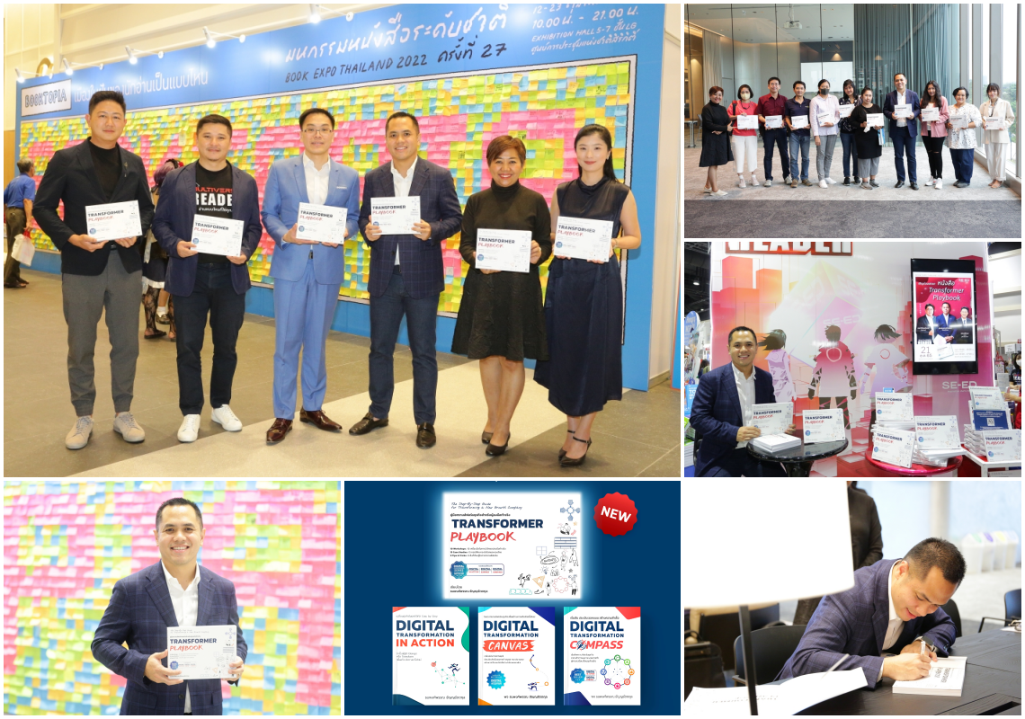 หนังสือชุด Digital Transformation ผลงานเขียนโดยคุณพจ ธนพงศ์พรรณ ธัญญรัตตกุล นักธุรกิจด้าน Digital Marketing ที่ปรึกษา อาจารย์ ผู้เชี่ยวชาญด้าน Digital Transformation ผู้ที่เริ่มต้นเขียนหนังสือ Digital Transformation in Action ในยุค Digital Disruption ด้วยข้อจำกัดที่ไม่สามารถให้คำปรึกษาได้ครบทุกบริษัทที่ติดต่อเข้ามา และเห็นว่าทุกธุรกิจควรได้รับองค์ความรู้ในการทรานส์ฟอร์มองค์กรที่ถูกต้อง คุณพจจึงตัดสินใจเลือกทำหนังสือเพื่อช่วยเผยแพร่องค์ความรู้เรื่องการทรานส์ฟอร์มที่ถูกต้องให้กับทุกธุรกิจที่สนใจได้ทันเวลา ทำให้หนังสือของคุณพจติดอันดับหนังสือขายดี มีกระแสตอบรับจากผู้อ่านว่ามีประโยชน์มาก จนทำให้ต้องมีหนังสือเล่มที่ 2 3 และ 4 ตามมาอย่าง Digital Transformation canvas/ Digital Transformation Compass และผลงานเล่มใหม่ล่าสุด Transformer Playbook ตามเหตุและปัจจัยทางเศรษฐกิจที่เปลี่ยนแปลงไปอย่างรวดเร็ว [อ่านที่มาของหนังสือชุด Digital Transformation ได้ที่ https://bit.ly/3OSE0VR]